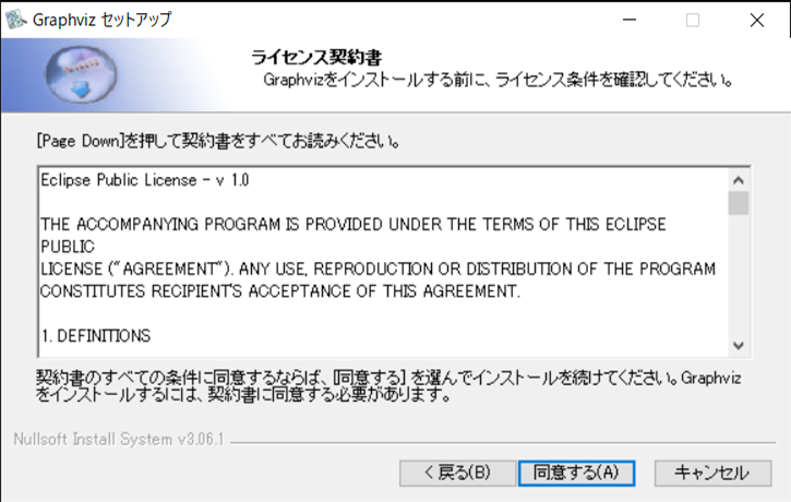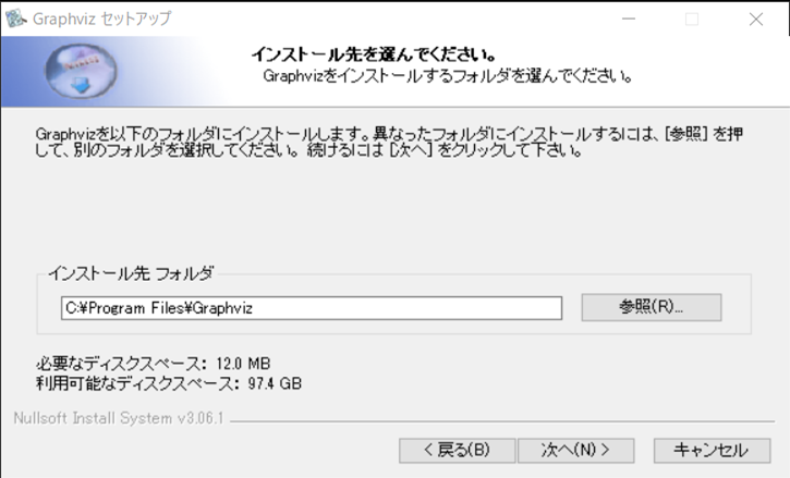 ダウンロードしたインストーラを実行し、指示に従ってGraphvizをインストールします。