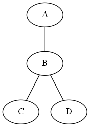 graph { A -- B -- C; B -- D; } -